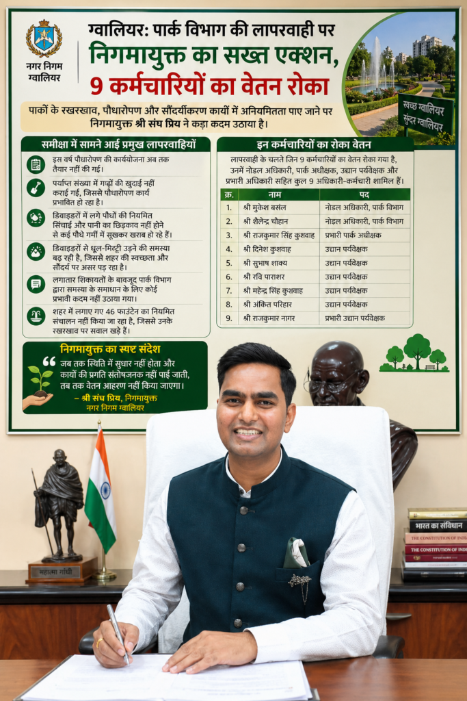 ग्वालियर। स्पेशल अपडेट शहर में स्वच्छता और खाद्य सुरक्षा को लेकर नगर निगम ने कड़ा रुख अपनाते हुए आज एक...