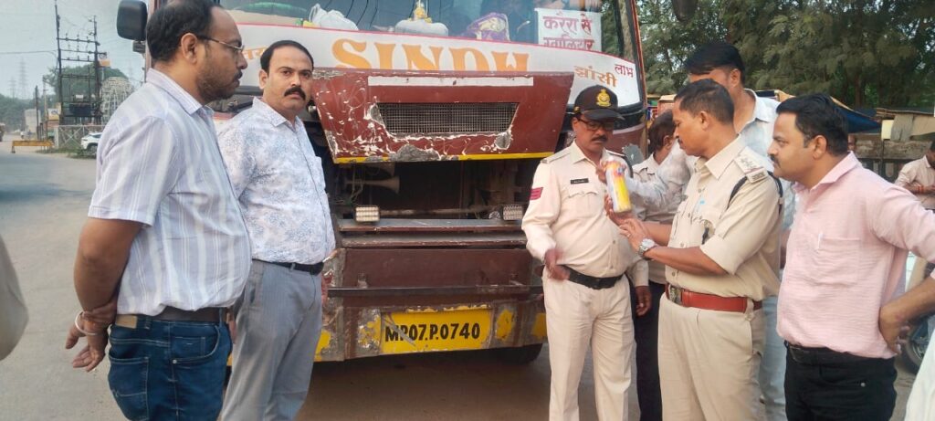 ग्वालियर। यात्री बसों में अग्निशमन यंत्र एवं अन्य सुरक्षा इंतजामों की जिला प्रशासन द्वारा जाँच कराई जा रही है। इस कड़ी में कलेक्टर श्रीमती रुचिका चौहान के निर्देश पर परिवहन एवं पुलिस विभाग की टीम ने गुरुवार 16 अक्टूबर को विक्की फैक्ट्री तिराहे सहित अन्य सड़कों पर 32 यात्री बसों की जांच की।