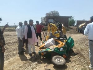 शिवपुरी। विशेष रिपोर्ट शिवपुरी जिले से एक बेहद दर्दनाक हादसा सामने आया है, जिसने पूरे क्षेत्र को झकझोर कर रख दिया। टोंगरा रोड स्थित पेट्रोल पंप के पास सड़क किनारे खड़े एक ऑटो पर मुर्गी दाने से भरा ट्रक अचानक पलट गया। इस भीषण हादसे में ऑटो में सवार दूल्हा-दुल्हन सहित चार लोगों की मौके पर ही मौत हो गई।
