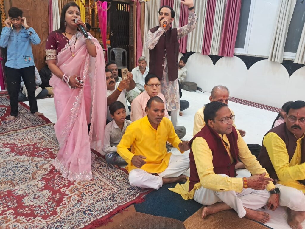 आजके संगीतकार दिल्ली से पधारे हैं कार्यक्रम की शुरुआत अतुल पारीक ने गणेश वंदना बाबा की जोत जगाके की