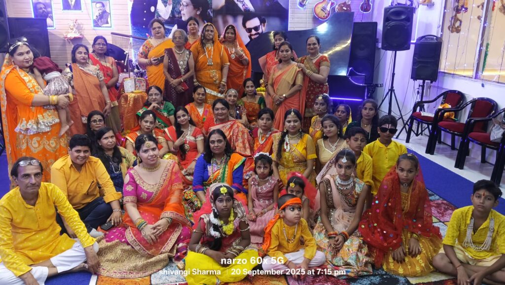 ग्वालियर। नवरात्रि के आगमन से पूर्व माता रानी के स्वागत में सुरों का बसेरा द्वारा गूंज संगीत स्टूडियो, दाल बाजार में एक भव्य कार्यक्रम का आयोजन किया गया। इस पावन अवसर पर लगभग 40 महिलाओं और 15 जरूरतमंद बच्चों ने भाग लेकर मां दुर्गा की भक्ति में रंग जमाया।